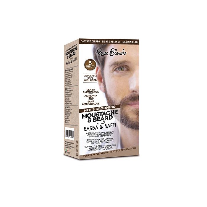 Boja za bradu i brkove Renee Blanche bez amonijaka prekriva sijede vlasi i to u vremenskom roku od 5 minuta. Intenzivira vašu prirodnu boju i pruža bradi mladalački izgled. Lako se nanosi zahvaljujući posebnoj četkici koja dolazi u pakiranju. Specifična formula omogućava prodiranje boje i u najdeblju i najotporniju dlaku na licu. Nakon nanošenja proizvoda, preporučljivo je koristiti šampon i balzam koji se nalazi unutar kutije.