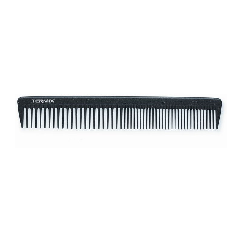 Profesionalni visokokvalitetni češalj za šišanje i raščešljavanje kose sa širokim i finim zupcima. Izrađen od čestica titana koje mu daju fleksibilnost, čvrstoću, izdržljivost i čine ga otpornim na toplinu i kemikalije. Dizajniran da pruži vrhunsku kontrolu i olakša oblikovanje. Ima zaobljene zupce koji štite kosu od lomljenja i pružaju ugodnost tjemenu. Dužina: 19 cm. Boja: Crna.