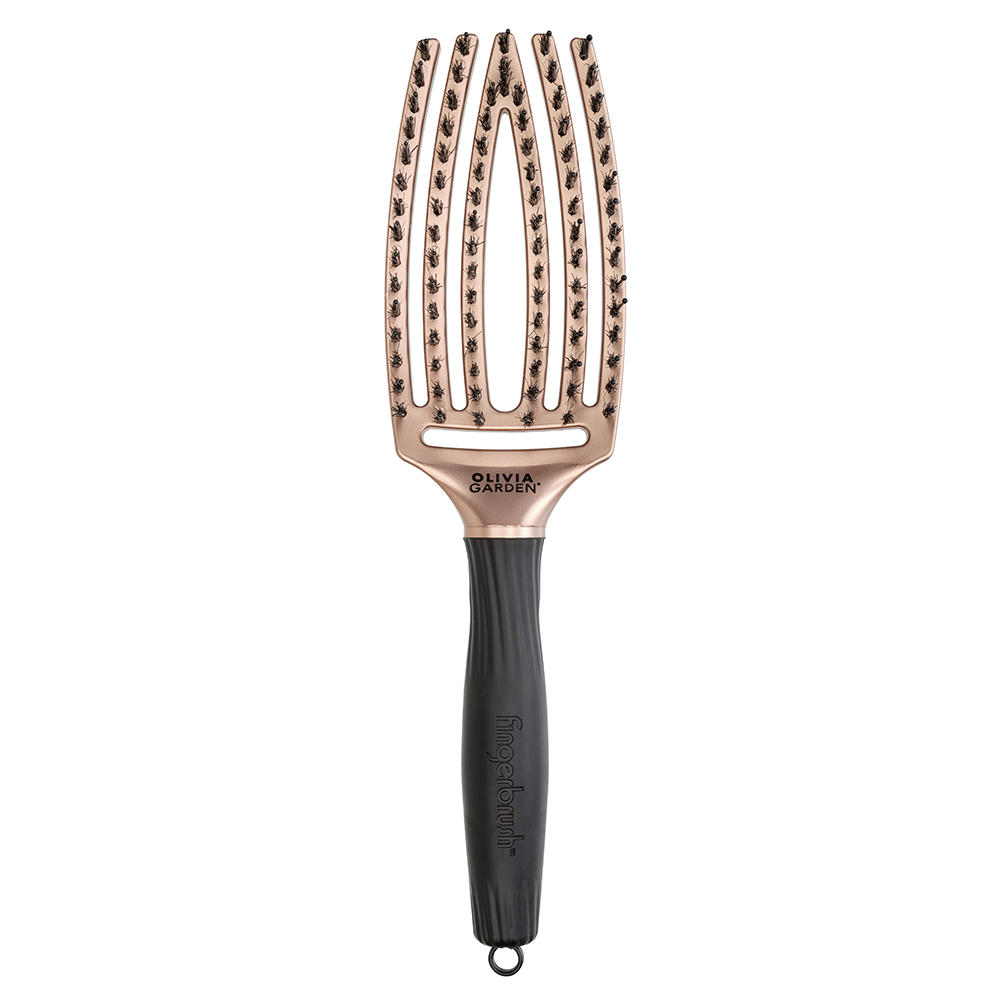 Olivia Garden Fingerbrush Mix četka namijenjena je svakodnevnoj upotrebi, za raščešljavanje i stiliziranje svih tipova kose. Savršena je za održavanje zdravlja kose zbog kombinacije prirodnih i umjetnih iglica, pomoću kojih distribuira prirodna ulja duž kose čime ističe prirodan sjaj, a istovremeno masažom stimulira vlasište.