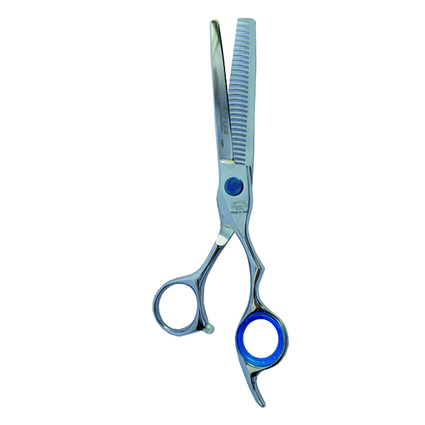 Profesionalne makaze efilirke od visokokvalitetnog poliranog japanskog čelika. Uz pomoć specijalne oštrice, omogućava glatko i kreativno rezanje. S kosim prstenovima za palac i kažiprst za ugodno radno držanje, te nastavkom za odmor prstiju, kao i podesivim vijkom. Hipoalergeni proizvod. Broj zuba 40. Japanski čelik AISI 440. Tvrdoća čelika 59 HRC. Veličina 6″.