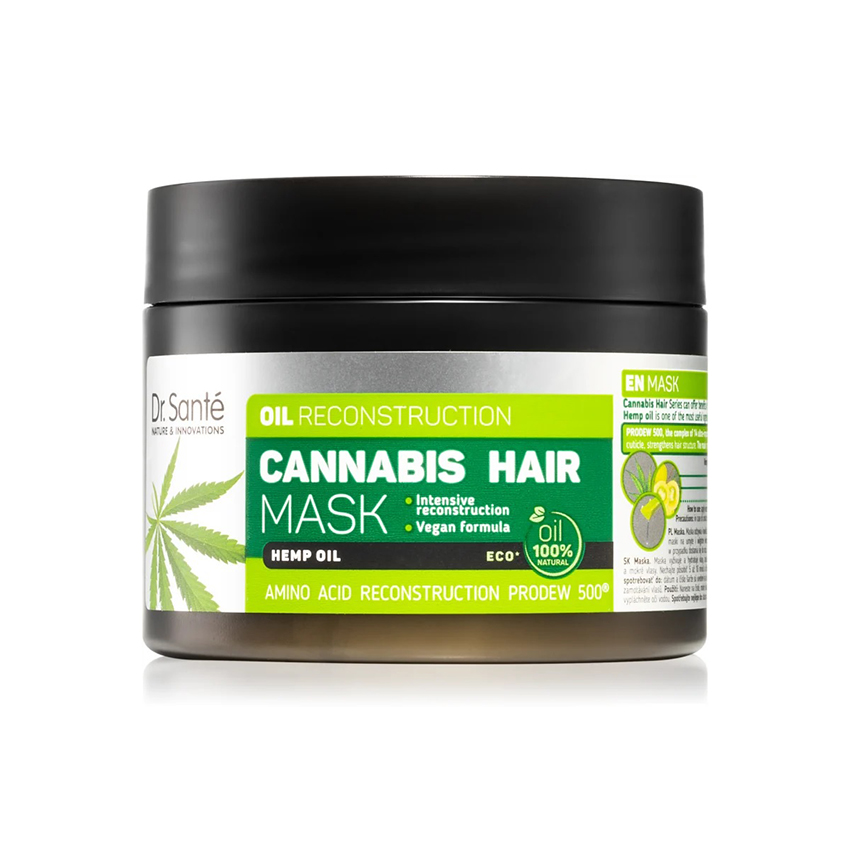 Maska sa 100% prirodnim uljem konoplje koja hrani i vlaži, sprječava lomljenje i cijepanje vrhova kose. Obogaćena PRODEW 500 kompleksom koji se sastoji od 14 aminokiselina. Amla ulje u sastavu daje kosi mekoću i sjaj. Sok aloe vere zasićuje kosu potrebnom vlagom, bez da ju otežava. Veganski proizvod. Proizvod nije testiran na životinjama.