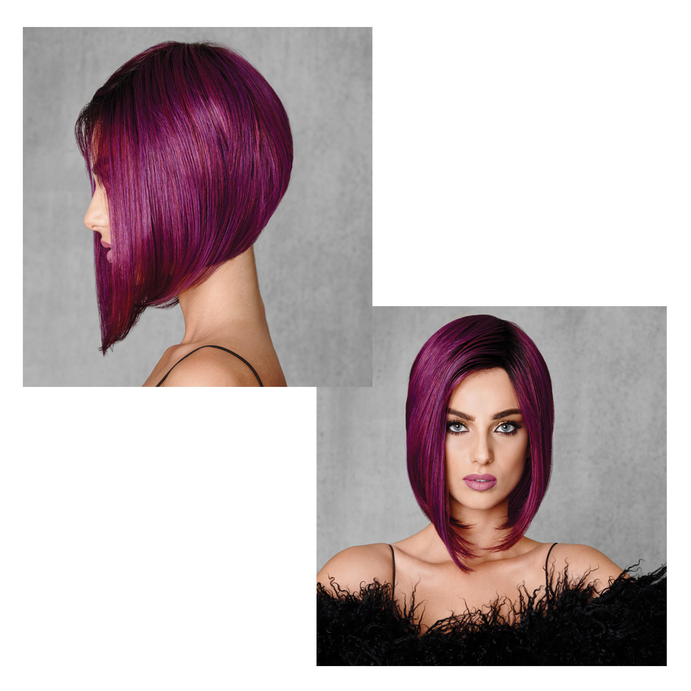 Perika izrađena od vlakana otpornih na toplinu – True2life. Vlasi ove kose možete zaglađivati, razbarušiti ii blago tapirati. Preporučljivo je korištenje maksimalne temperature od 180 °C. Nevjerojatna stvar kod vlasi ove perike je da se stvrdnu nakon što se perika ohladi, kako bi kosa zadržala oblik. Otpornost na toplinu je uzbudljiva nova tehnologija u svijetu perika. Ova perika je A kroja, što znači da su slojevi kraći straga i postupno postaju dulji prema naprijed. Stil prekrasno završava suženim zatiljkom od 6 cm, stapajući se s vašim prirodnim dekolteom. Gornje i krunsko područje ove perike ima zatvoreni dio od mrežastog materijala za cvijeće. Ovaj posebni dizajn omogućava stabilnost perike, bez klizanja. Nijansa ‘Midnight Berry’ je odvažna i prekrasna duboka ljubičasta nijansa. Radi se o lijepoj tamnoj nijansi boje patlidžana s malo crvene i više ‘ljubičasto ružičaste’ u cijelosti. Korijen je tamniji za prirodniji izgled.
