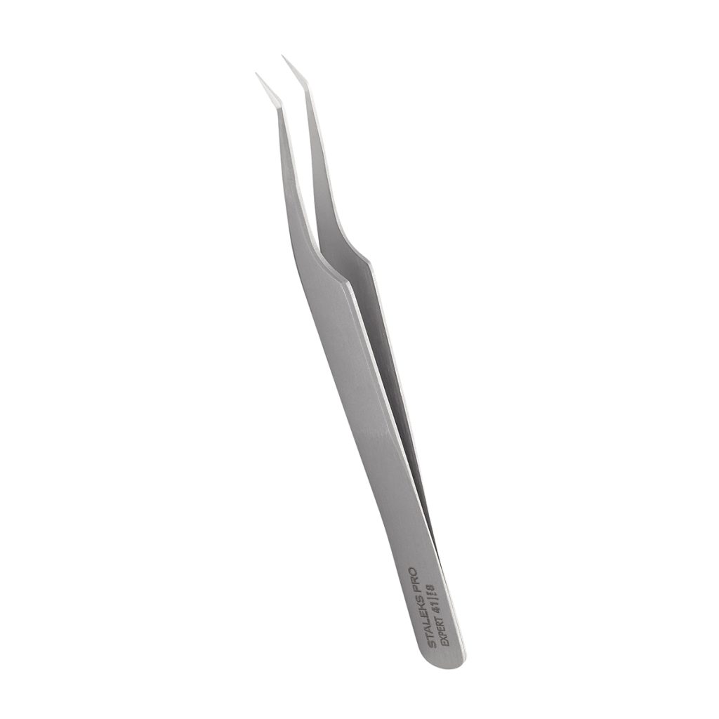 Profesionalna blago svijena Inox pinceta za nadogradnju ekstenzija. Polirana radna površina ne oštećuje trepavice i sprječava prianjanje ljepila.