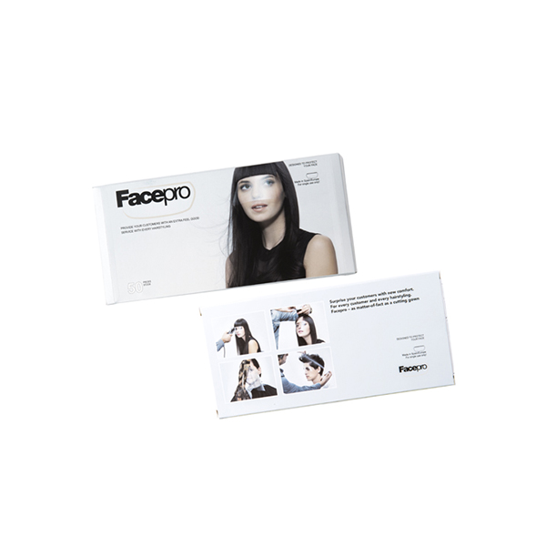 Zaštitna prozirna maska koja osigurava 100% zaštitu za lice – oči, usta i kožu, tijekom šišanja, bojenja i stiliziranja kose. Ovaj tanki mekani film jednostavan je za korištenje i tijekom šišanja, lakiranja i feniranja kose. Pakiranje sadrži 50 samostojećih maski.