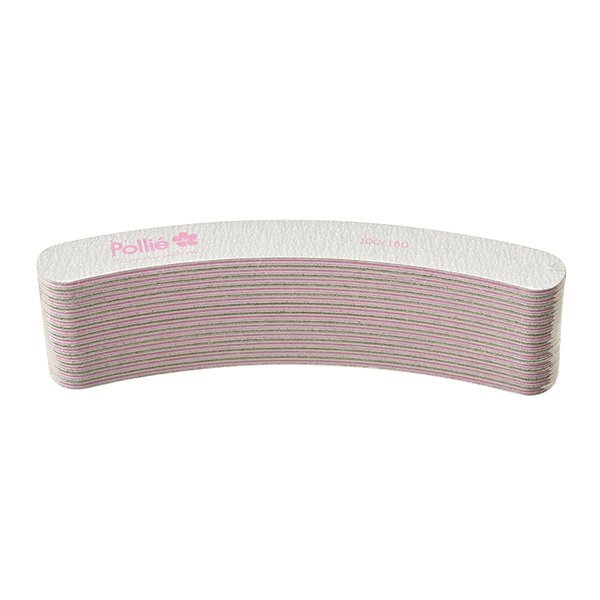 Profesionalna, dvostrana turpija za prirodne i umjetne nokte u obliku bumeranga. Pakiranje: 12 komada. Granulacija: 100/180#.