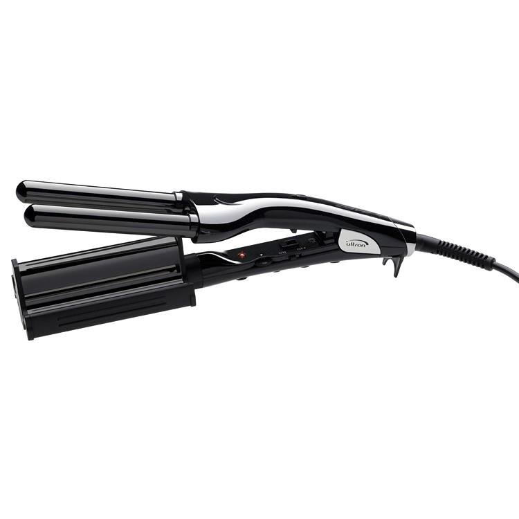 S keramičkim pločicama s mogućnošću okretanja. Zagrijavanje u 90 sec do max 230°C), s mogućnošću zaključavanja pločica. Održava stalnu temperaturu. Profesionalni gumirani kabal 3 metra dužine s mogučnosću okretanja za 360°.